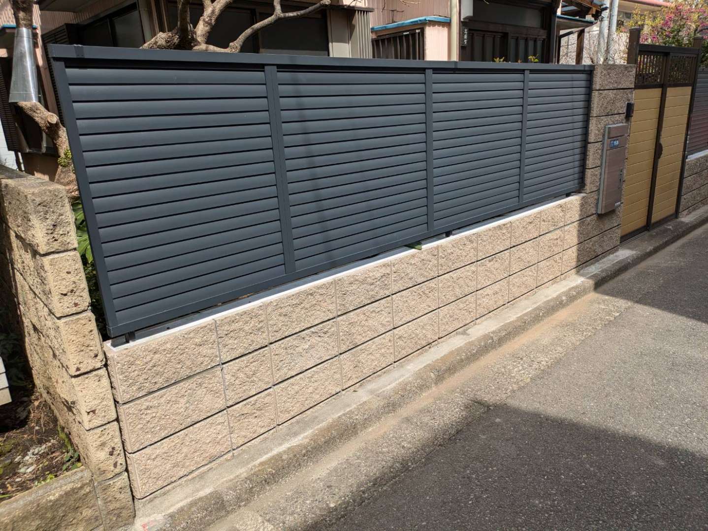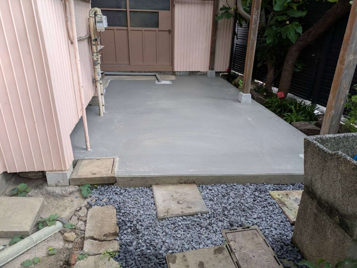 外構工事の中でも、アルミフェンス+ブロック設置、庭物干しスペースコンクリート打設をさせていただきました。